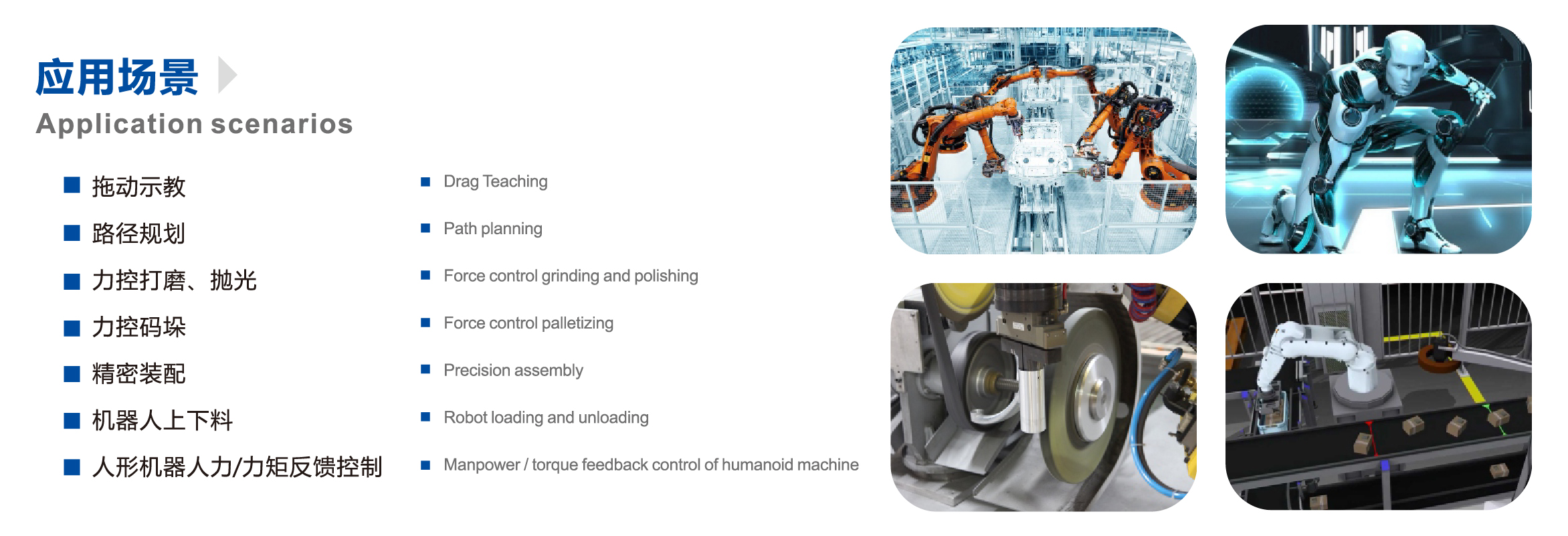 應(yīng)用于工業(yè)機器人、協(xié)作機器人、外骨骼機器人、醫(yī)療康復(fù)機器人、柔性夾爪和機器人關(guān)節(jié)、自動化測量、控制及風(fēng)洞測試等。