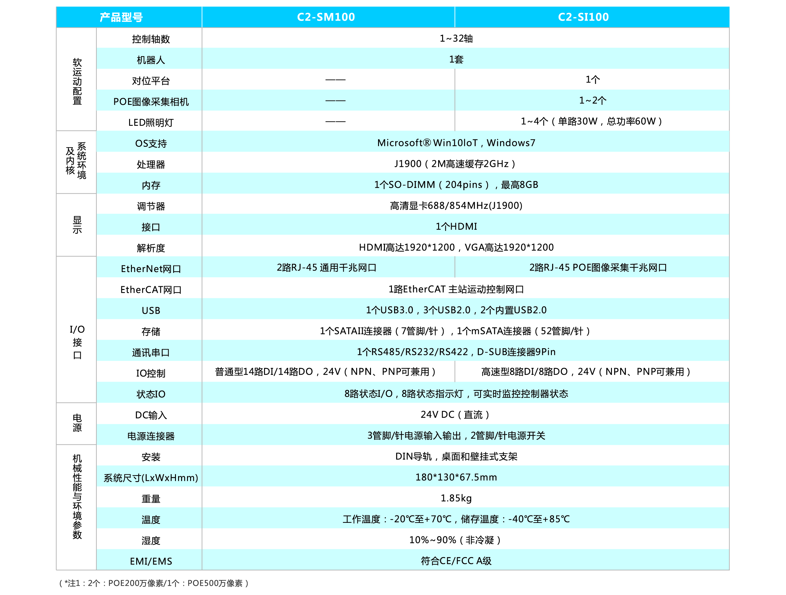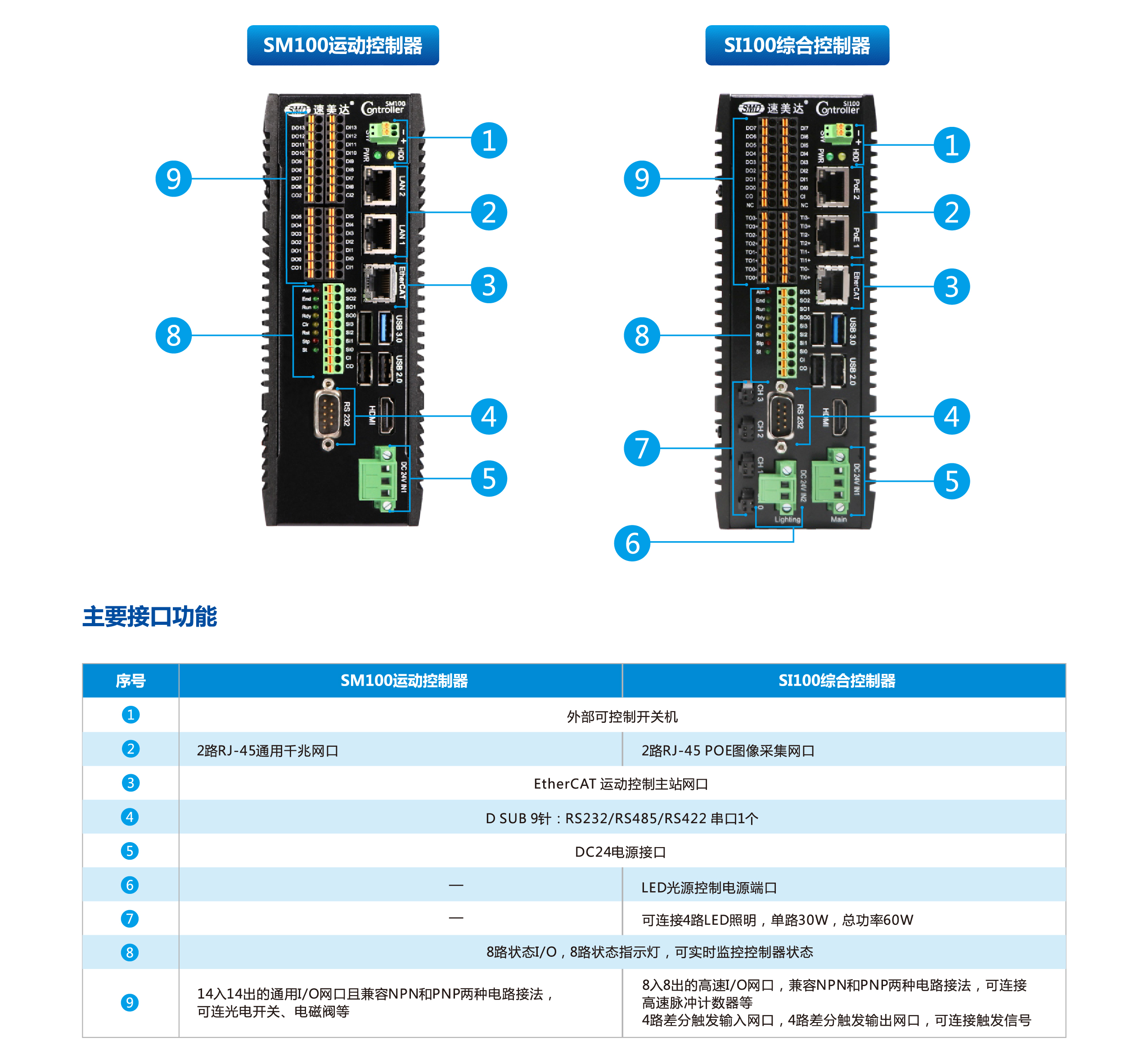 SM100/SI100系列經濟型控制器性價比高,可控制到32軸,其中包含1套機器人運動模型控制,SI100可帶視覺算法功能,可與機器人、平臺配合完成精密裝配動作。