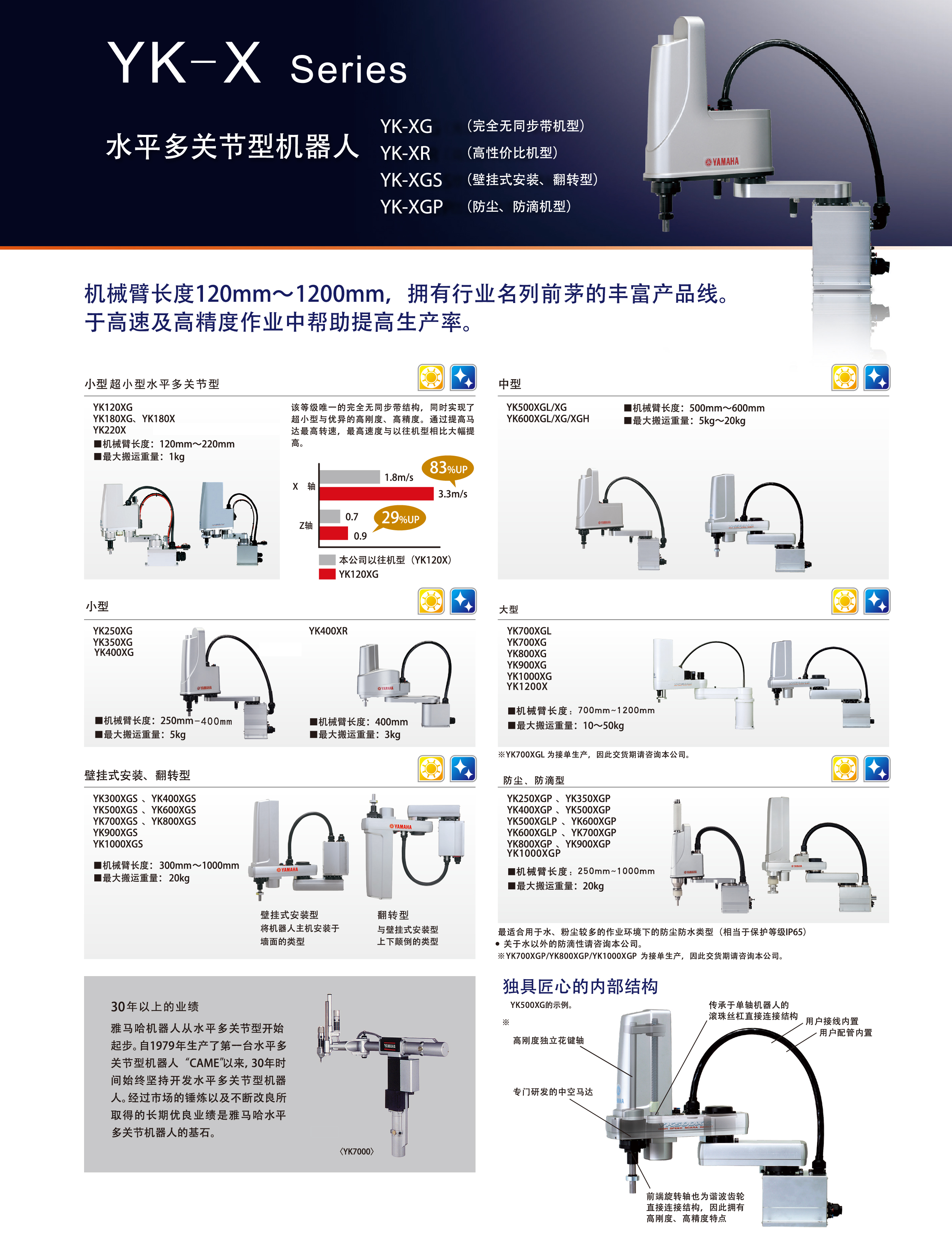 機(jī)械手臂長(zhǎng) 120mm~1200mm!行業(yè)頂級(jí)的豐富產(chǎn)品系列,完全無皮 帶式結(jié)構(gòu),發(fā)揮出水平多關(guān)節(jié)機(jī)器人特征的極限!