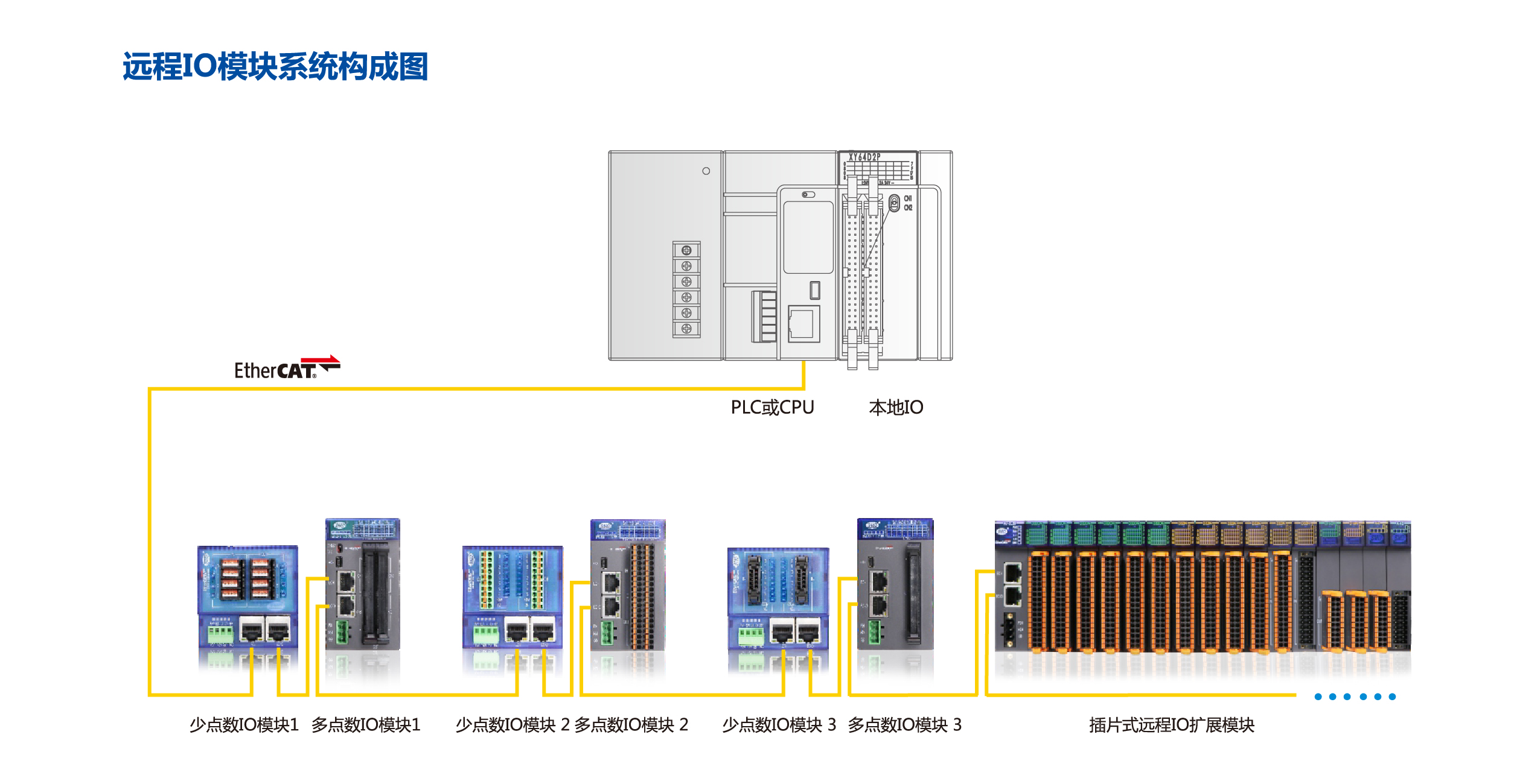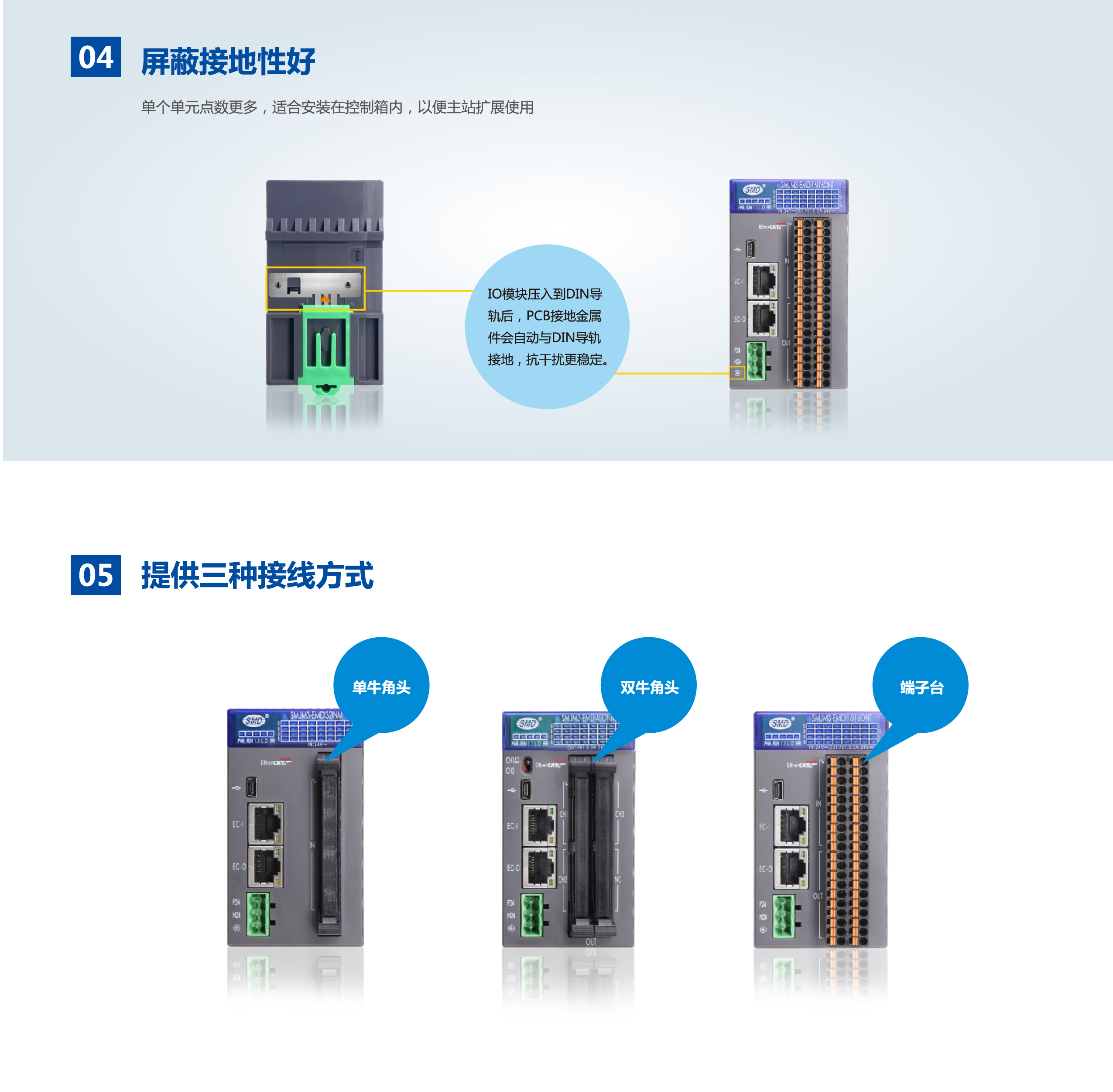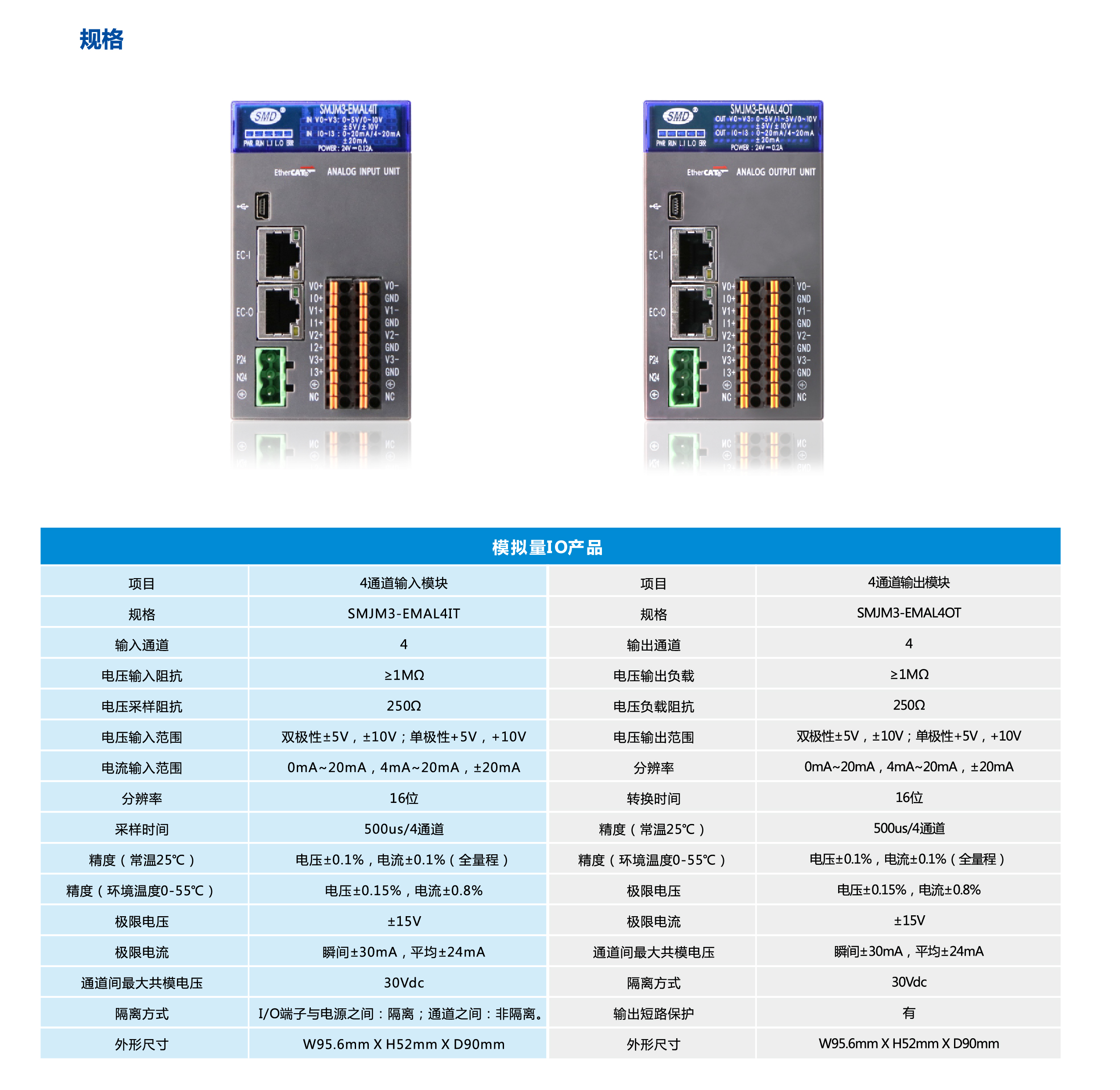 少點(diǎn)數(shù)及多點(diǎn)數(shù)遠(yuǎn)程IO是速美達(dá)自主研發(fā)的一款總線產(chǎn)品。將通訊端口,電源模塊,IO模塊集成在單個模塊上。其擁有體積小、結(jié)構(gòu)緊湊、 接線簡單、 接線接口豐富、 性能穩(wěn)定、 可靠等特點(diǎn)。目前支持EtherCAT 總線,后續(xù)會增加CC-LINK,PROFINET等總線接口。有多種型號類型以及輸入輸出點(diǎn)可供選擇,單個模塊最大可支持48個信號點(diǎn)。