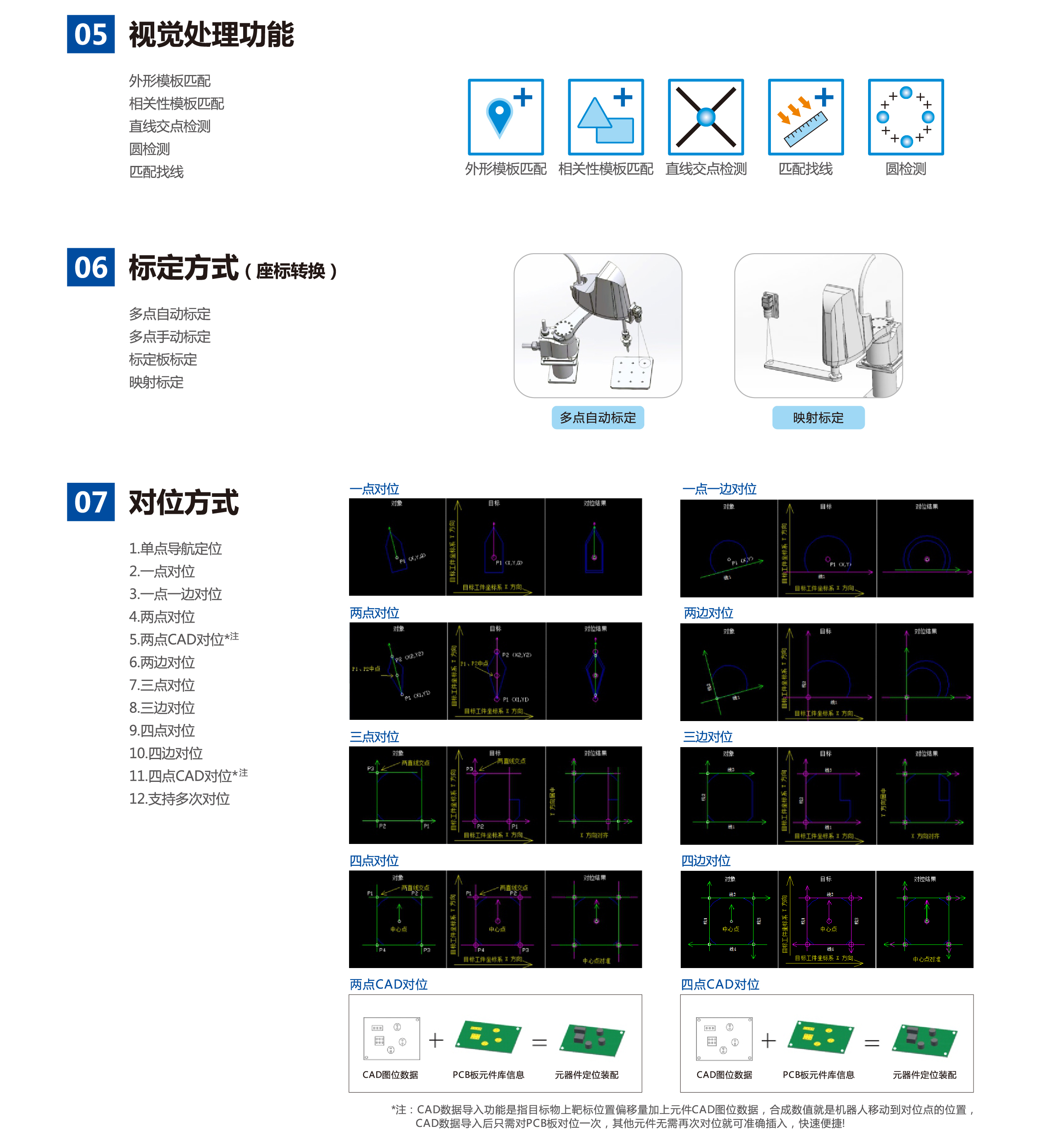 視覺對位模塊是我公司專門為機器人視覺定位對位而開發(fā)的,視覺對位模塊具有無需編程、 簡單易用、 —鍵相機標定、 自動位置校準、 自動位置補償、 圖像處理功能豐富、 穩(wěn)定可靠、 處理速度快、 通用性好等特點。