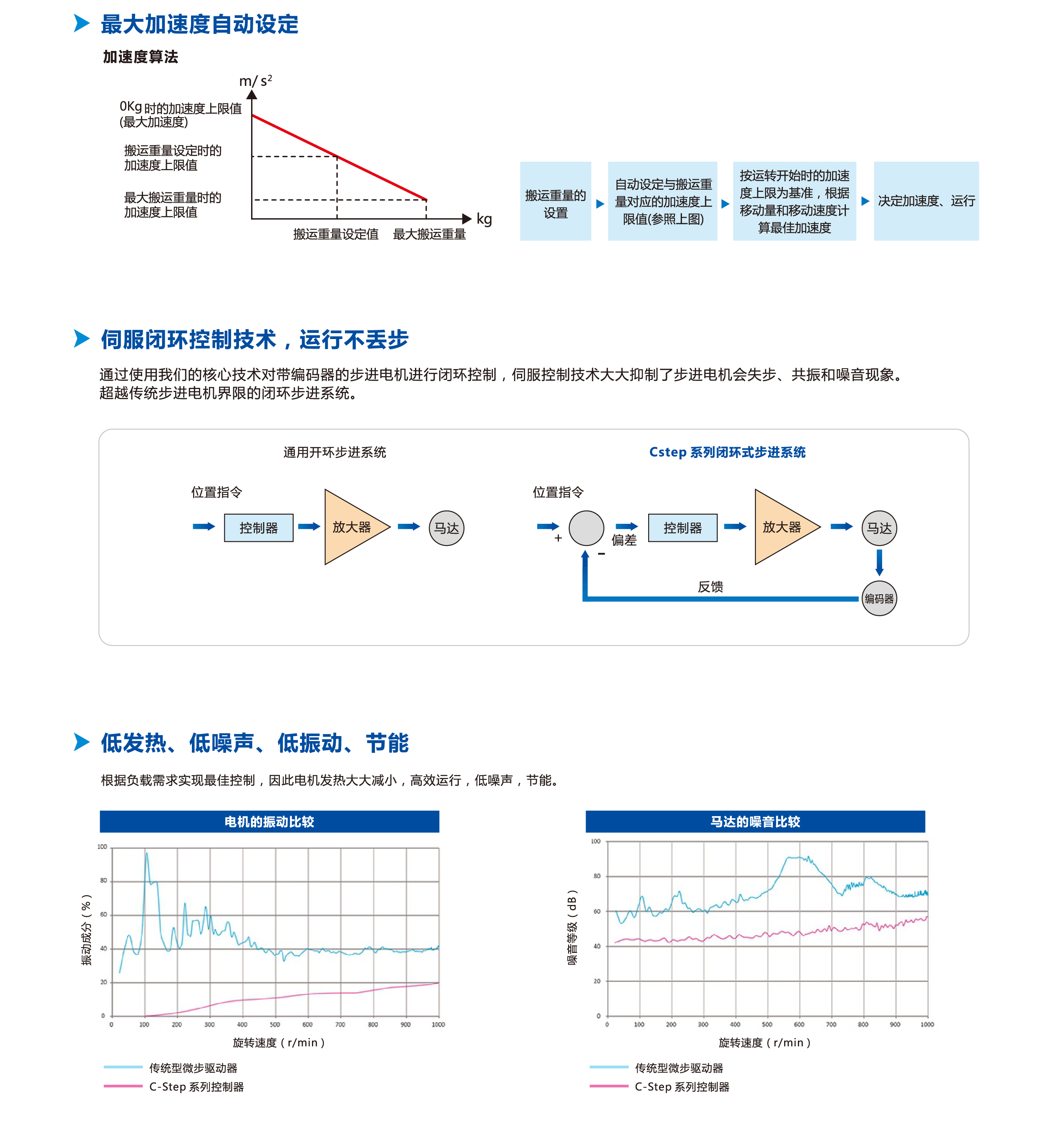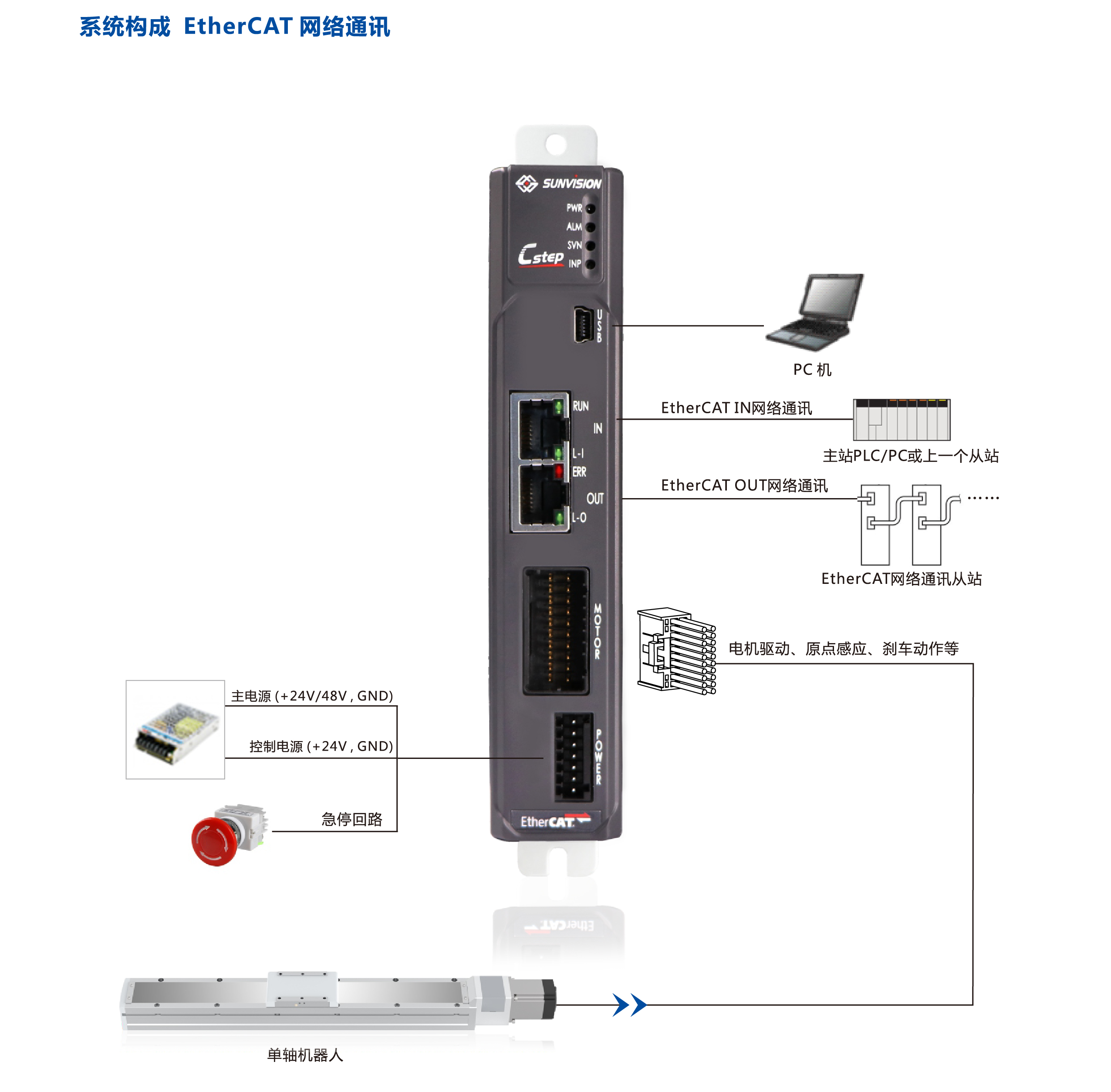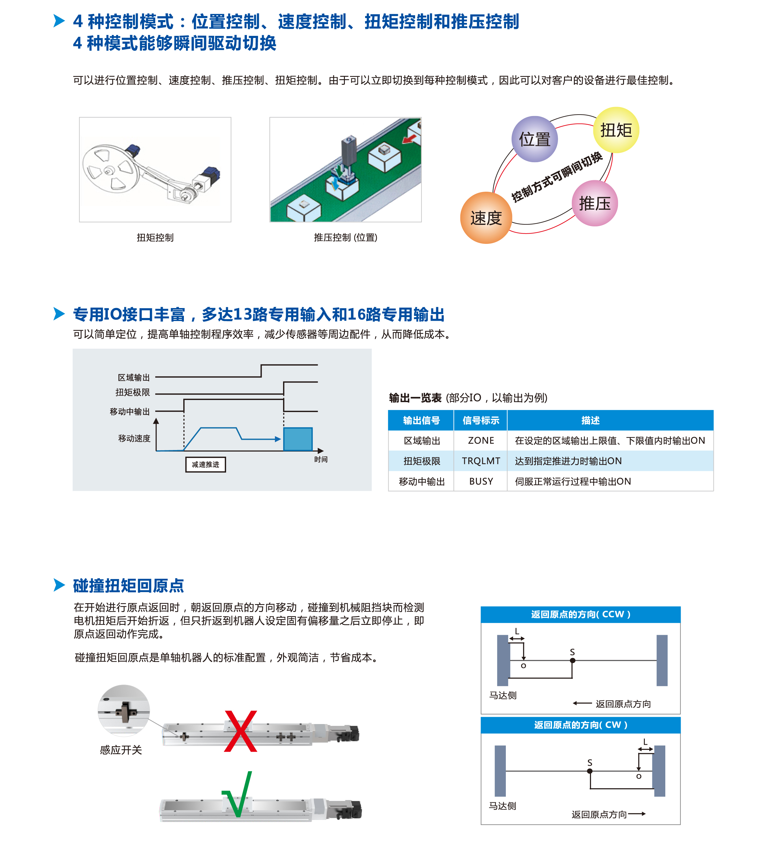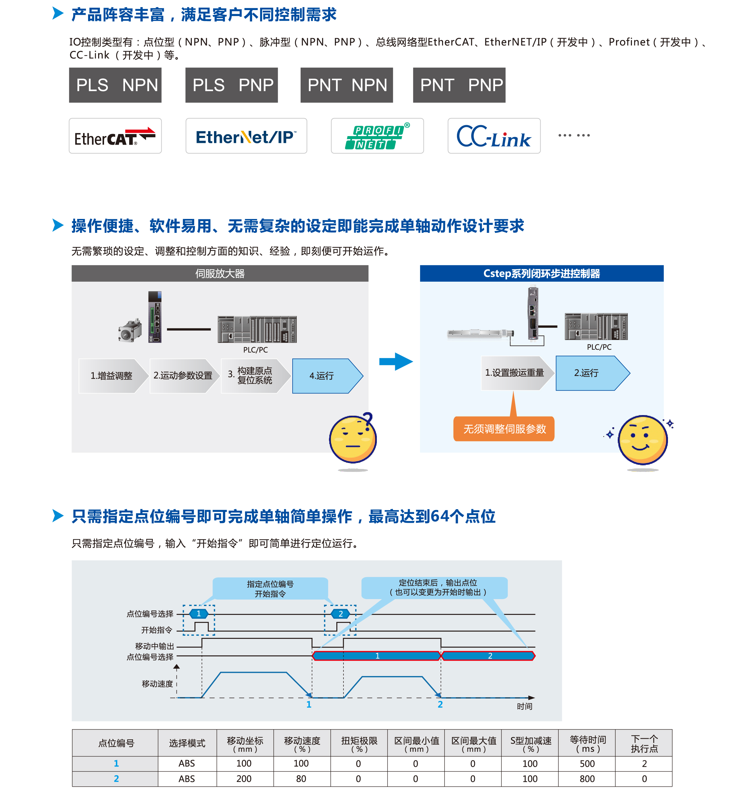 Cstep系列閉環(huán)步進單軸控制器是基于混合式二相閉環(huán)步進電機的勵磁電流精準控制而開發(fā)的。 1臺控制器具有位置控制、 速度控制、扭矩控制、 推壓控制4種工作模式,實現(xiàn)高響應高扭矩、 低速高扭矩,編碼器分辨率為16000PLS/r , 達到伺服電機性能要求,性價比高,特別適合集成于單軸滑臺電缸、 電動夾爪的位置、 力度等精準控制。