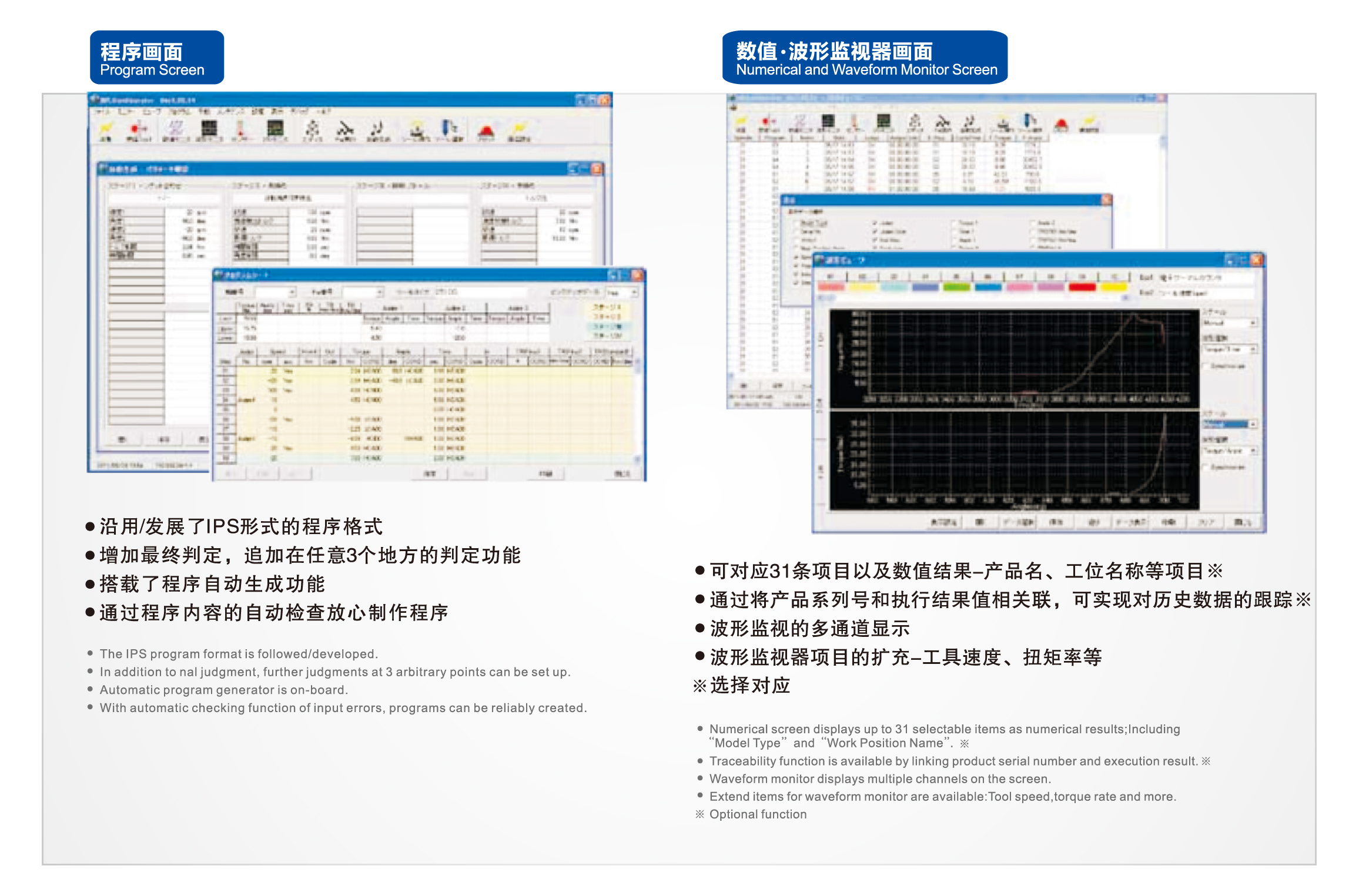 內(nèi)藏式構(gòu)造的螺絲擰緊機(jī),簡(jiǎn)約輕巧 全數(shù)字化 多樣豐富的擰緊方式 豐富的數(shù)據(jù)處理軟件系統(tǒng) 多樣的網(wǎng)絡(luò)功能