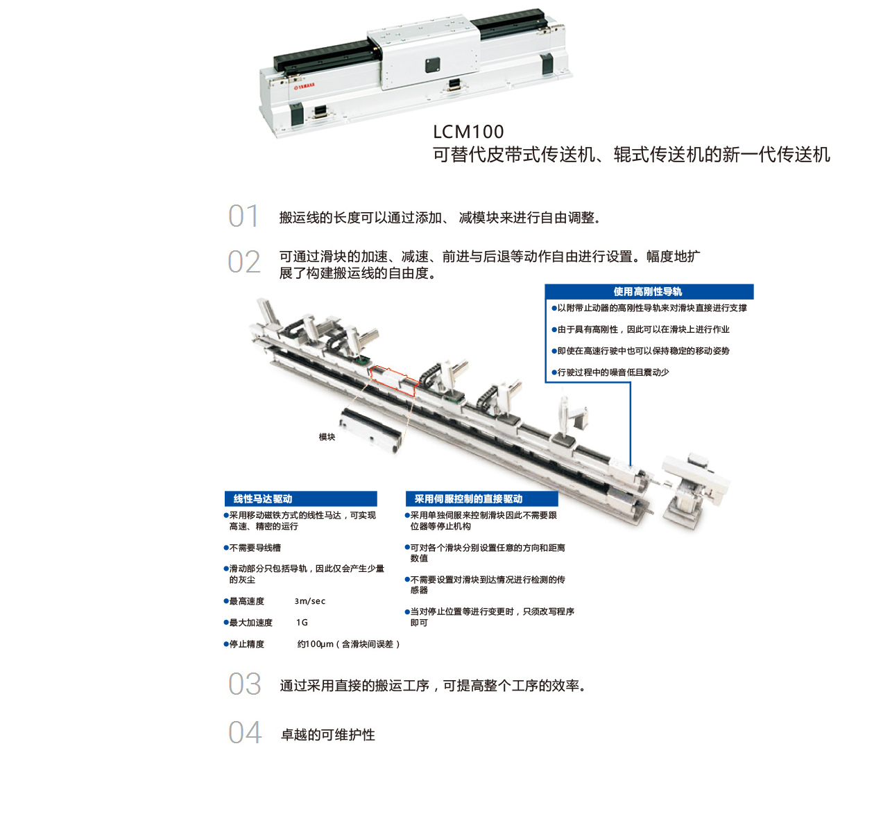 替代自由流動式傳送機(jī)、帶式傳送機(jī)的新一代搬運(yùn)系統(tǒng)——線性傳送模組??梢造`活自由地構(gòu)建制造生產(chǎn)線,尤其適合多品種小批量的生產(chǎn)。