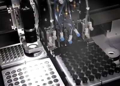 ● 針對安防、車載鏡頭的組裝,由單軸機器人在三個料盤分別取料,通過向上相機定位拍照,再移動到鏡筒上方定位目標位置,輸出定位坐標完成定位流程。