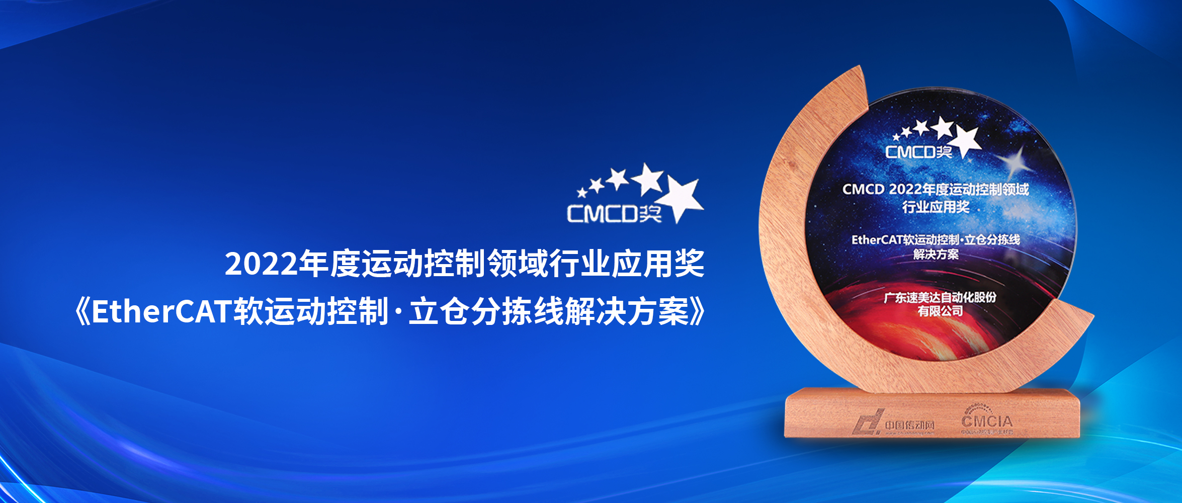 2022年,中國工業(yè)在疫情的壓力下艱難前行,在這樣的大環(huán)境下,速美達(dá)始終堅守初心,憑借著優(yōu)越的解決方案和持續(xù)的創(chuàng)新能力,在行業(yè)中脫穎而出,憑借方案《EtherCAT軟運動控制 · 立倉分揀線解決方案》,獲得“CMCD 2022年度運動控制領(lǐng)域行業(yè)應(yīng)用獎”這一寶貴獎項。